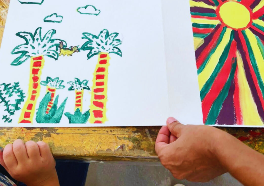 Eva, 10 ans : « Ce que je préfère dans l’atelier c’est la peinture et la création. J’ai appris comment faire des créations plus grandes. Pour moi, l’atelier c’est joyeux car je suis contente en y allant. »