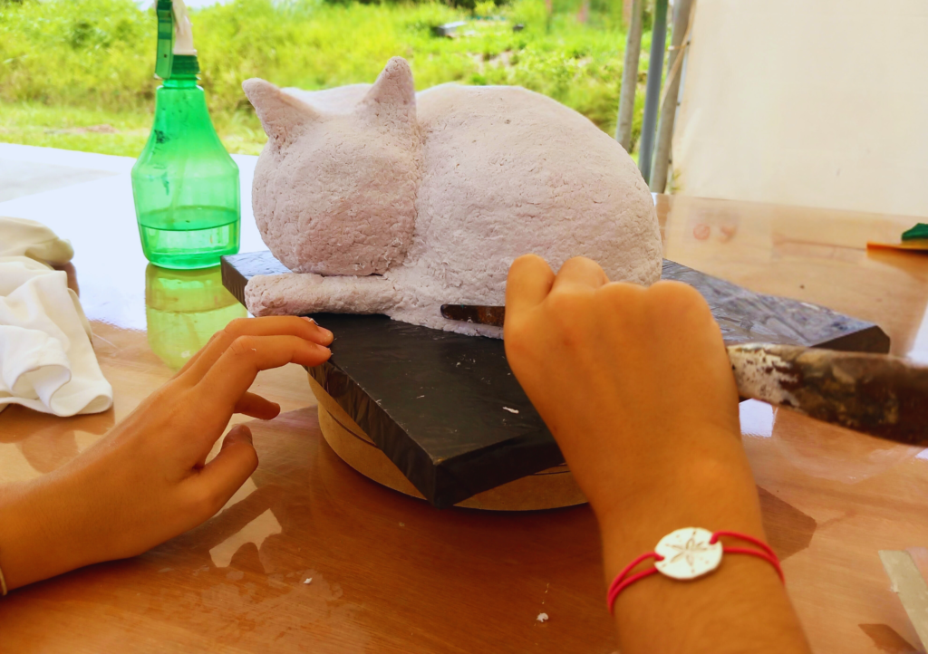 Esteban, 11 ans : Ce que j’ai préféré, c’est décorer les tortues en béton. J’ai appris la poterie et j’ai fait des progrès en peinture. En un mot, l’atelier, c’est super bien !